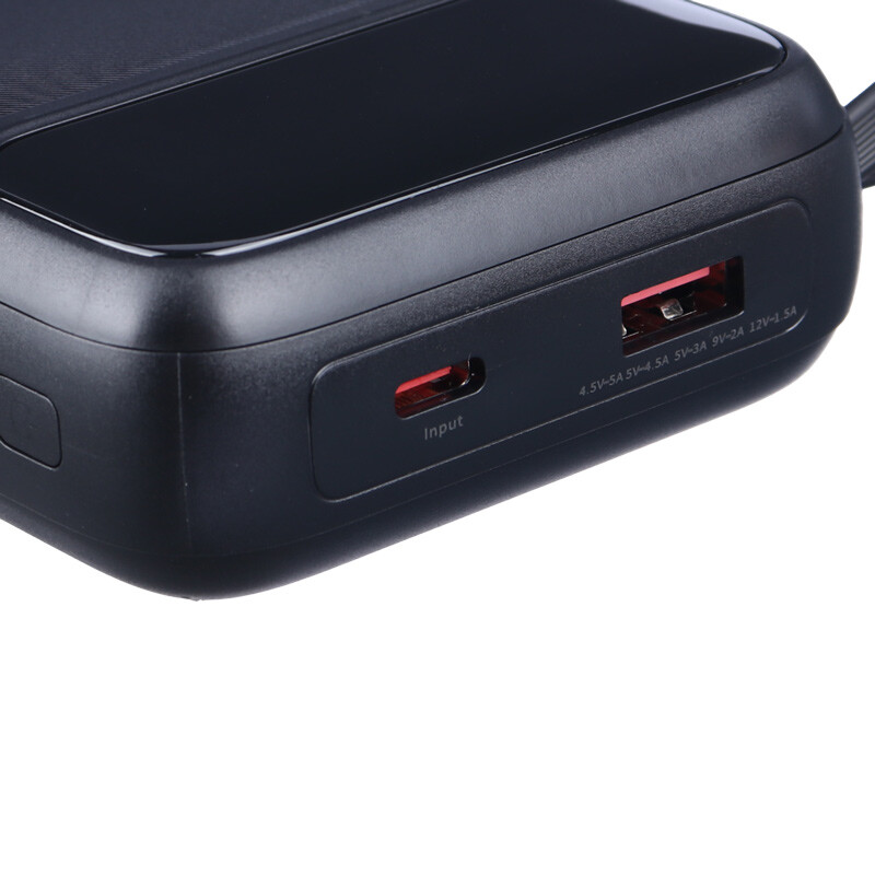 برای شارژ مجدد پاور بانک، یک پورت Type‑C با حداکثر ورودی 2 آمپر در 9 ولت (18 وات) و یک کابل Type‑C مشترک متصل به بدنه با ورودی 2.4 آمپر در 5 ولت در نظر گرفته شده است. این ترکیب انعطافپذیری مطلوبی ایجاد میکند تا با کابلهای متداول بتوانید دستگاه را سریع و راحت شارژ کنید.