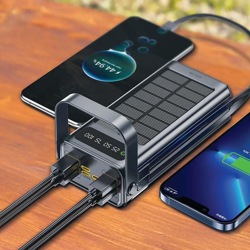 درون دستگاه یک باتری لیتیوم پلیمری با ظرفیت 30000 میلیآمپر ساعت تعبیه شده که انرژی کافی برای چندین بار شارژ کامل گوشیهای هوشمند، تبلتها و سایر تجهیزات دیجیتال را فراهم میکند. وجود پنل خورشیدی در بخش بالایی محصول این امکان را فراهم میسازد تا در نبود منبع برق، با نور خورشید نیز بتوان پاور بانک را شارژ کرد؛ ویژگیای حیاتی برای طبیعتگردها و سفرهای طولانی.